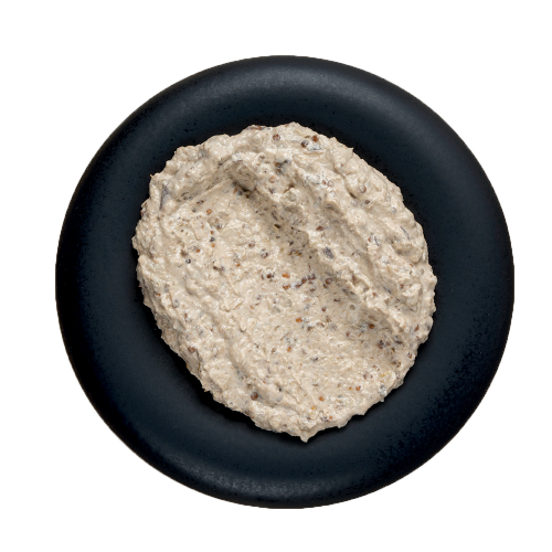 Συστατικά: Μελιτζάνα 56%, Μαγιονέζα [Φυτικό έλαιο (σογιέλαιο ή ηλιέλαιο), νερό, κρόκος αυγού παστεριωμένος, Μουστάρδα (νερό, ξύδι, σινάπι, φυσικό άμυλο καλαμποκιού, αλάτι, ζάχαρη, άρωμα μουστάρδας), ρυθμιστής οξύτητας: κιτρικό οξύ, φυτικές ίνες], φρυγανιά (αλεύρι σίτου, μαγιά, αλάτι), τυρί ΦETA (αιγοπρόβειο γάλα, πυτιά, οξυγαλακτική καλλιέργεια, αλάτι), ΕΞΑΙΡΕΤΙΚΟ ΠΑΡΘΕΝΟ ΕΛΑΙΟΛΑΔΟ 3%, σκόρδο, αλάτι, ζάχαρη, συντηρητικά: Ε202, Ε211. Πιθανόν να περιέχει ίχνη από σέλινο, σουσάμι.